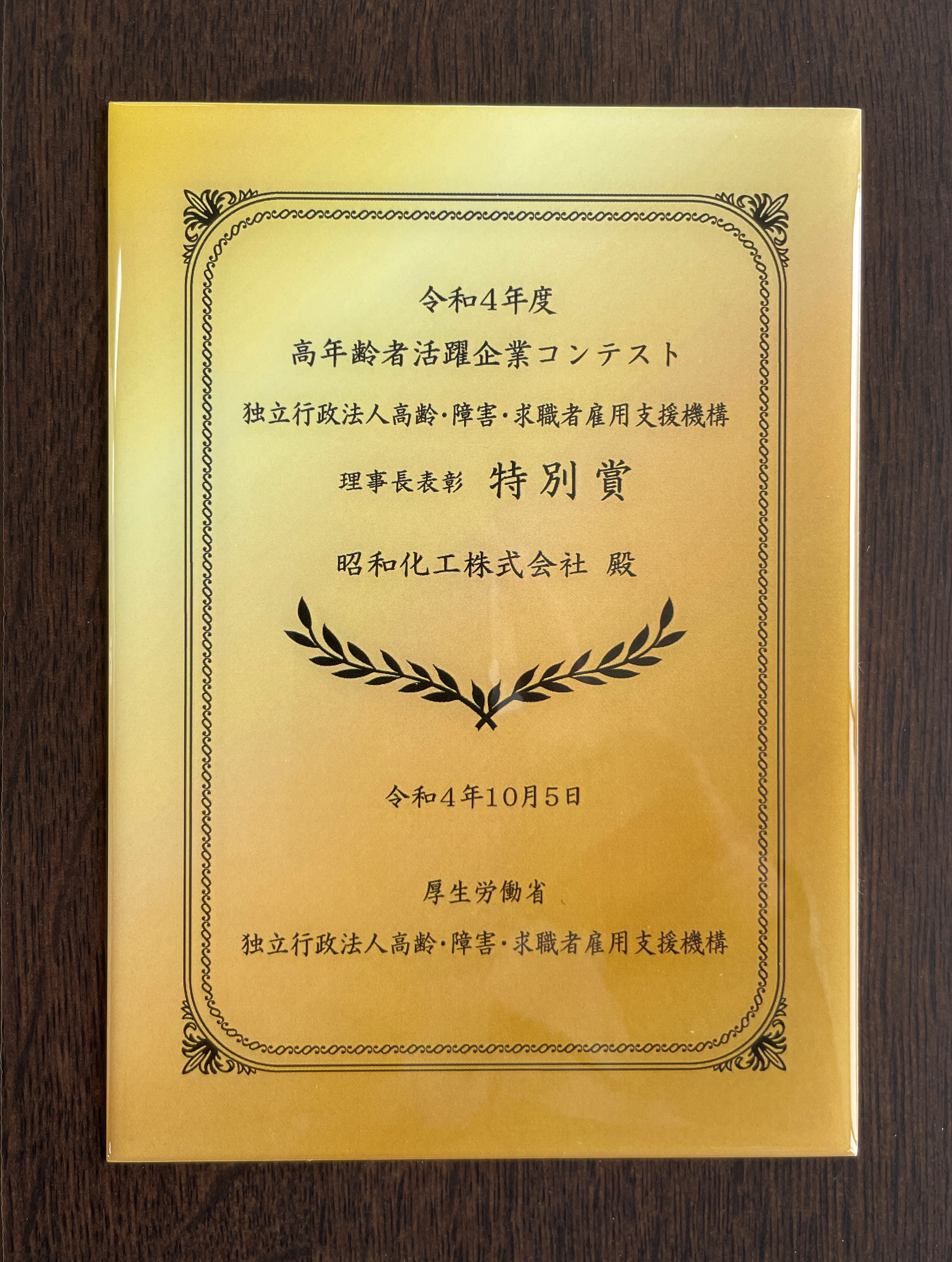 体が表彰されるものです。今後も従業員の健康づくりを推進してまいります。