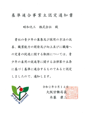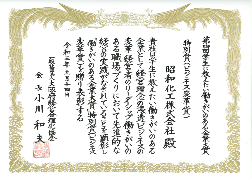 本社(昭和化工)同様に、ご指導、ご鞭撻を賜れますよう、よろしくお願い致します。