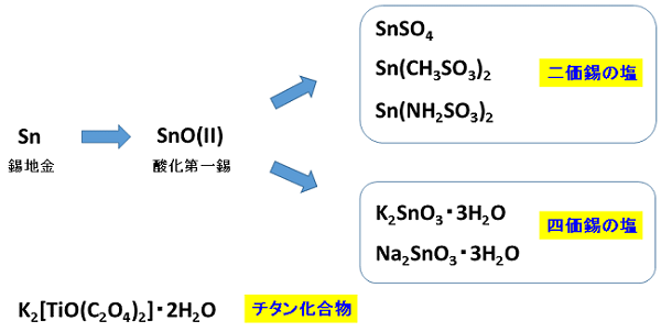 昭和化工㈱では錫の地金から各種無機錫化合物、またチタン化合物等を製造しています。